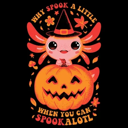 What’s better than an axolotl? A punny Halloween axolotl. This spooktacular design is axolotl fun for the young at heart.